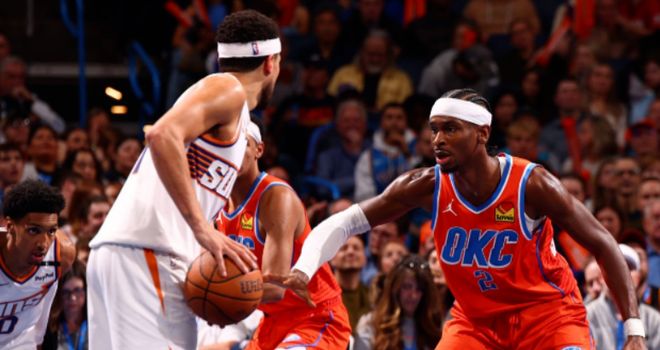 疯狂战绩的背后,是断崖式领先的攻防效率。数据显示,当时雷霆的进攻效率高达120.0,净效率达到了史诗级的+15.9 (历史第一)。而在防守端,他们的防守效率(DEFF)高达105,将排名第二的活塞(110.9)远远甩在身后,同样是联盟独一档的存在 。那时候的亚历山大,常常三节打卡,彼时的俄城,满眼都是‘金州勇士’的影子。
