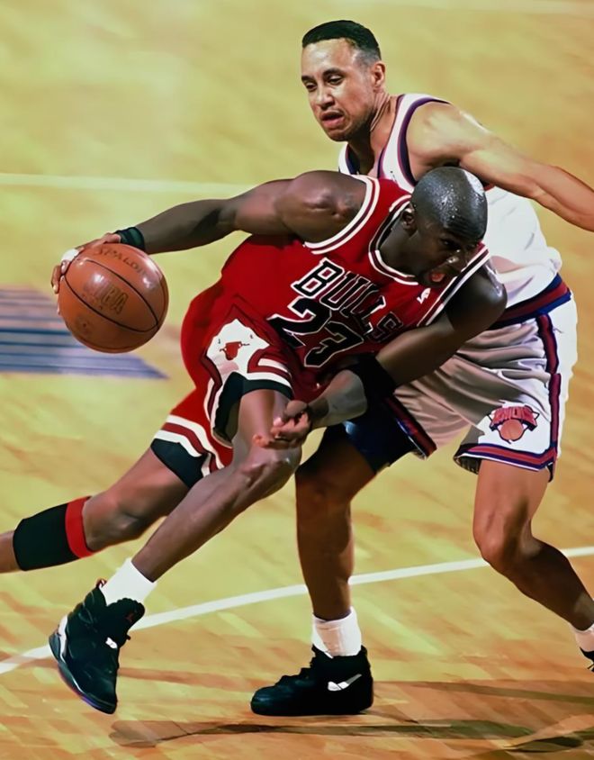 看乔丹打球,才知道什么叫进攻无死角。年轻时候的他,就是飞天遁地的“飞人”,第一步启动快到防守人连尾气都追不上,空中折叠拉杆、暴扣虐筐,把突破玩成了艺术;年纪大了运动能力下滑,他又把背身单打练到了臻入化境,翻身跳投、低位脚步,每一招都精准无解。那时候全联盟29支球队,挖空心思研究怎么防乔丹,包夹、绕前、恶犯,能用的招都用了,还是拦不住他得分。甚至球迷都开玩笑,防乔丹只能用“捧杀”,把他夸开心了,他可能就手下留情拿20分,要是惹恼了,全场就得被他打成背景板。要是把乔丹放现在的吹罚尺度,没有恶意犯规、没有强硬肢体对抗,他场均轰下40分,真的一点不夸张。