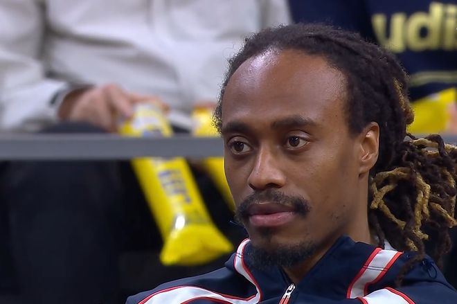 本场比赛,麦考尔首发出场打了8分48秒,投篮5中2,拿到了6分+3犯规的数据。