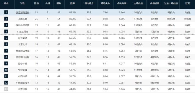 CBA常规赛已经打到第30轮,在率先进行的两场对决中,深圳男篮主场104-84大胜江苏男篮,豪取五连胜的同时,排名也是升至联赛第三名;浙江广厦客场102-95击败天津男篮,也是豪取五连胜,在先赛一场的情况下,浙江广厦暂时反超上海男篮升至联赛第一名。从积分榜的最新格局来看,常规赛冠军将会在浙江广厦和上海男篮之间产生,而深圳男篮则状态回暖,大概率会锁定前四的位置,广东男篮最近6战4败,跌出前四似乎只是时间的问题,而北京首钢的阵容问题依旧非常棘手,暂时还未达到争冠水准,5-10名之间的竞争太激烈了,在最后冲刺阶段,每场打完排名都会发生全新的变化。