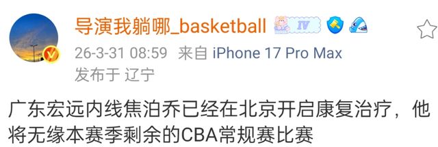 广东宏远在四川男篮和江苏男篮身上拿到了两连胜,但内线隐患还是非常严重,根据媒体人报道,焦泊乔确定常规赛报销,季后赛是否回归还没有确定,如果不及时补充大外援,那么广东宏远季后赛恐怕会非常困难。