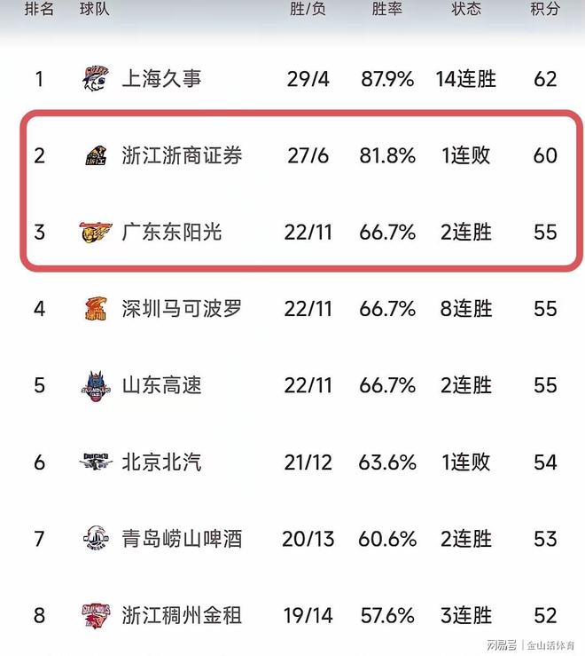 值得一提的是,广厦队的下一个对手,是深圳队的同省“老大哥”广东队。对于广厦队来讲,这是一场不容有失的比赛,因为开赛至今,广厦队虽然输了6场球,但还没有连败过。再加上广厦与广东之间,积分榜一个排第2,一个排第3。广东队目前22胜11负,与山东队胜负率一样,再输就要掉出前4,弄不好季后赛要打附加赛。因此,广东与广厦此番交手,一定会是“火星撞地球”,双方一场血战,不可避免。