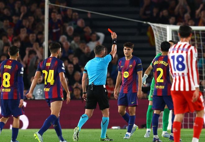 比赛开始后巴萨给马竞施加了很大的压力,接连创造出机会。不过,拉什福德屡失良机。好不容易拉什福德取得进球,却因为越位被吹掉。马竞在第44分钟的一次反击彻底改写了比赛进程。库巴西作为最后一名防守球员,放倒前插的小西蒙尼。裁判直接红牌把库巴西罚下,导致巴萨只能10人应战。而马竞获得了任意球机会。阿尔瓦雷斯任意球直接射门打进,帮助马竞取得领先。下半场瑟洛特再接再厉,门前抢点射门打进,彻底击垮巴萨球员的心理防线。最终马竞2-0完胜巴萨。