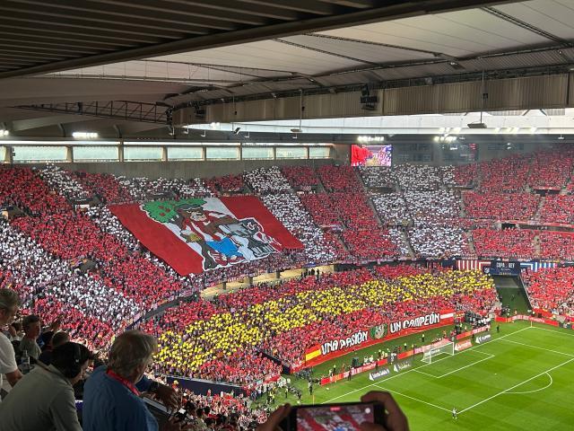 国王杯决赛当天上午,笔者搭乘高铁从马德里前往塞维利亚,车厢几乎被马竞球迷占满,他们在火车上放声歌唱,对于国王杯夺冠极有信心。决赛开场前的卡尔图哈体育场看台上,也是马竞球迷多出一筹。在欧冠时隔多年重返四强之后,床单军团以国王杯冠军为接下来的欧冠半决赛之旅提振士气,看起来也是顺理成章的事情。