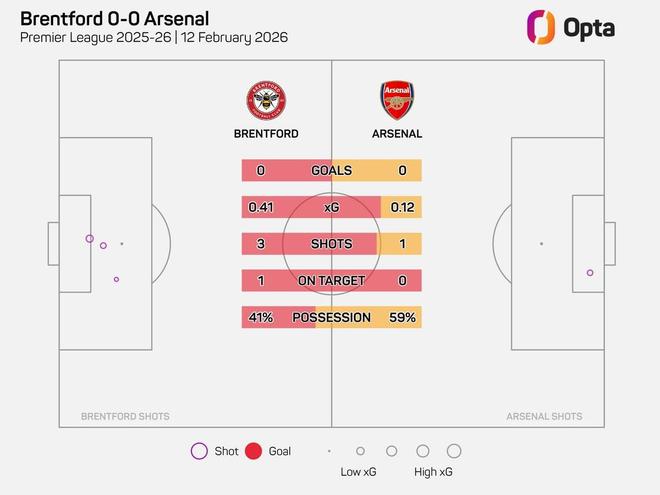 上半场比赛,布伦特福德和阿森纳一共只完成4次射门,其中布伦特福德完成3次射门,1次射正,阿森纳仅1次射门,没有射正。