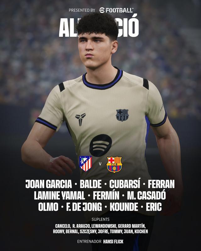 马竞vs巴萨:卢克曼、格列兹曼首发,亚马尔、奥尔莫出战