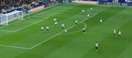 继续猛攻的马竞,在第34分钟再次取得进球,阿尔瓦雷斯禁区内接到队友倒三角传中后,无私分给了左路位置更好的卢克曼,后者轻松推射建功,将比分改写为了3-0,半场比赛结束之前,阿尔瓦雷斯大禁区线附近大力抽射,终结了连续11场的进球荒,帮助马竞带着4-0的比分,回到了中场更衣室。