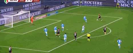 第46分钟,扳平比分,韦尔加拉单刀破门,那不勒斯1-1
