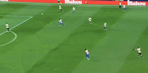 来到第33分钟,朱利亚诺-西蒙尼右路传球,阿尔瓦雷斯不停球横传,卢克曼跟进得分,马竞3-0了!