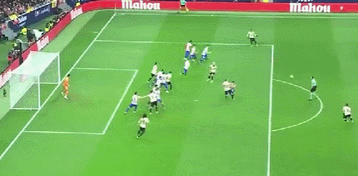 比赛开始刚第7分钟,埃里克-加西亚后场回传,霍安-加西亚停球巨大失误送大礼,球直接漏过了门线,马竞1-0领先!