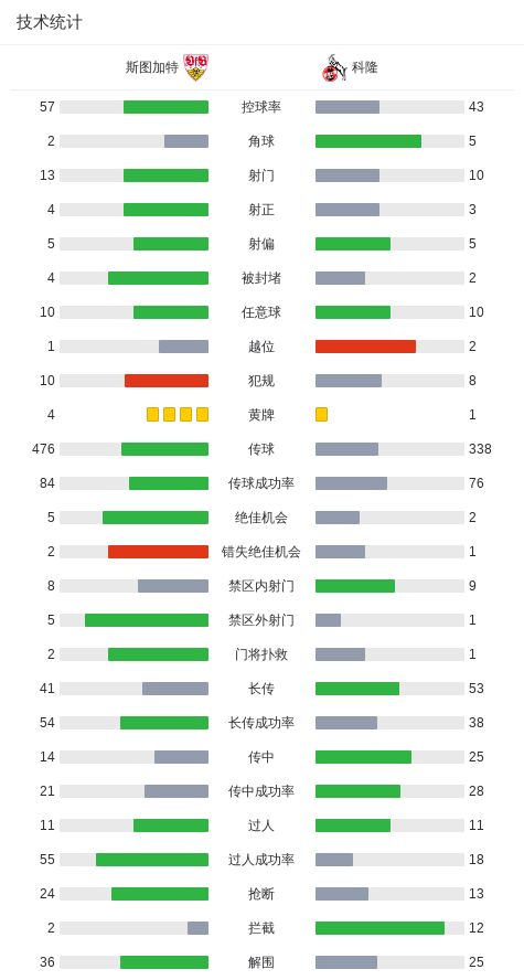 北京时间2月15日德国足球顶级联赛 联赛 第22轮,斯图加特主场对阵科隆。斯图加特德米罗维奇梅开二度,昂达夫破门。科隆阿赫破门。最终比分斯图加特 3-1 科隆。