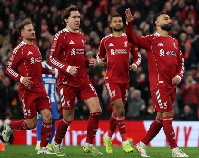 另一场足总杯在利物浦和布莱顿之间展开。主场作战的利物浦踢疯了,3-0横扫布莱顿。凯尔凯兹助攻琼斯进球首开纪录。之后萨拉赫助攻索博斯洛伊进球扩大比分。萨拉赫随后依靠个人能力制造点球机会。他亲自主罚命中,彻底杀死比赛。萨拉赫利物浦生涯第3次单场比赛完成进球助攻加造点。萨拉赫踢完非洲杯回来之后,状态变得越来越好了。他连续6场比赛制造了6球。