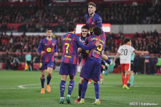 上半场补时,奥尔莫持球在禁区被绊倒,裁判吹罚点球,但可惜亚马尔主罚的点球击中立柱。上半场双方踢平0-0,易边再战,第59分钟,孔德起脚传中到禁区,19岁小将库巴西头球破门收获个人本赛季首球,这粒进球也是巴萨在本赛季各项赛事的第100粒进球,火力十足的巴萨已经连续4个赛季单赛季进球数破百!