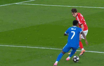 维尼修斯的高兴劲没持续太久。他在角球区附近的夸张庆祝引发了本菲卡方面的不满。很快,巴西人走到裁判身边申明立场,裁判做出暂停比赛的手势。原来,维尼修斯听到本菲卡的阿根廷中场普雷斯蒂亚尼对他说了“猴子”这个种族歧视字眼,要求启动“反种族主义程序”。比赛中断这10分钟时间,包括双方教练在内的很多人都试图安抚维尼修斯。然而开弓没有回头箭,程序一旦启动就要当场给出说法。调取录像发现,普雷斯蒂亚尼说话时拉起球衣遮住了嘴,没有实锤证据。看看维尼修斯,在替补席喝了点水,情绪平复些,同意继续比赛。