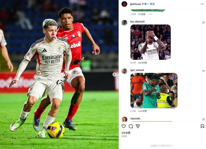 因种族歧视维尼修斯,本菲卡球员普雷斯蒂安尼社媒被冲