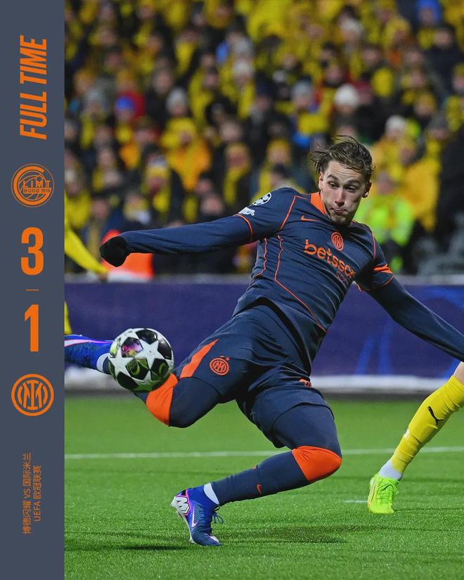 反观国米,全场比赛的表现堪称“离谱”。从数据上看,他们看似占据绝对优势:58%的控球率、15次射门,远超博德闪耀的42%控球和8次射门,但效率却低得令人发指——仅4次射正,只靠埃斯波西托的进球勉强挽回颜面。而博德闪耀则将“效率为王”发挥到极致,8次射门6次射正,3次洞穿国米球门,每一次反击都精准致命,让意甲豪门的后防线形同虚设。