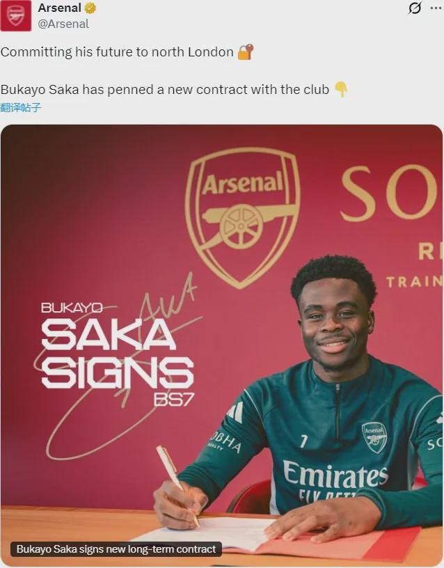 终于官宣了,其实萨卡的续约说了快半年了,大家都清楚,不多说。