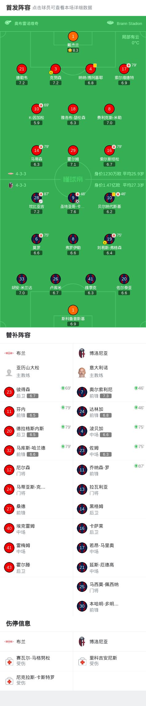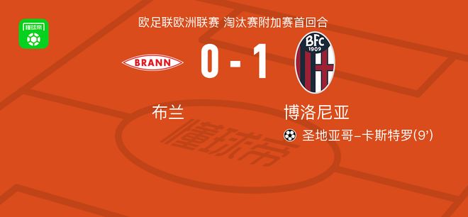 北京时间2月20日欧足联欧洲联赛 淘汰赛附加赛首回合,布兰对阵博洛尼亚。博洛尼亚圣地亚哥-卡斯特罗破门。最终比分布兰 0-1 博洛尼亚。
