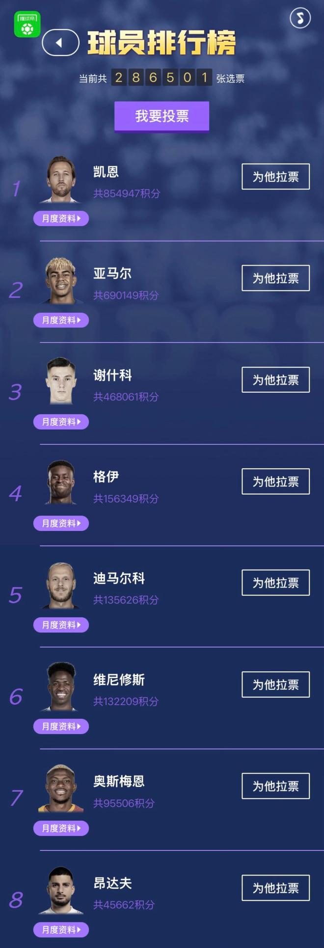 球迷朋友们大家好,欢迎来到懂球帝国际足坛2月MVP评选。经过球迷投票,拜仁球星凯恩在第5次入围候选后,终于首度当选懂球帝的月度MVP!
