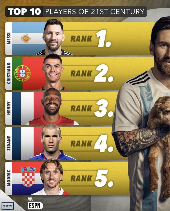 最近账号foot.var整理了《21世纪球员前十》榜单,梅西排第1,C罗排第2,亨利直接冲到第3,后面还有齐达内、莫德里奇、姆巴佩这几位。可同一张名单里,门将和中卫位置被完全清空,布冯、卡西利亚斯、拉莫斯这种“硬仗里真能改比分”的人一个都没进;连卡卡这种拿过金球奖、拿过欧冠的核心也没位置。把亨利压在齐达内前面、把姆巴佩提前放到第6、同时把这些人全部挡在门外,这个前十排法到底站得住吗?