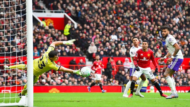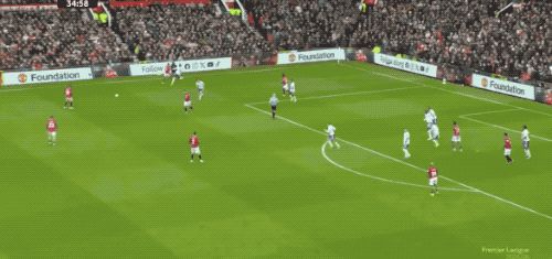 第53分钟,马丁内斯扑出姆伯莫的射门,曼联获得角球,B费主罚,卡塞米罗前点头球攻门,打破僵局。