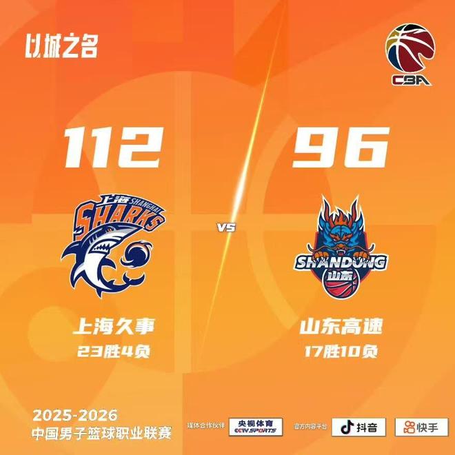 第四节,李添荣底角三分命中,陶汉林上篮得手回敬两分,王哲林中距离跳投命中,古德温、李添荣先后命中三分。暂停回来,李添荣手感火热连获5分,将分差重新扩大至两位数,王哲林强突上篮打进,古德温篮下强硬2+1打成,张镇麟内线连获4分。全场比赛结束,上海112比96山东,取得常规赛八连胜。目前,上海队以23胜4负的战绩位列CBA积分榜首位。
