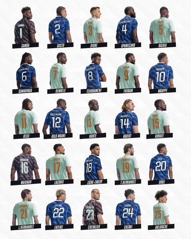 法国队大名单球衣号码: